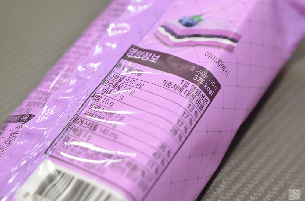 어제 구매하는 데에 성공한 블루 아카이브 빵은 총 두 종류가 있는데, 하나는 위 사진에서 볼 수 있는 레이사의 슈퍼 스타 블루베리 샌드케익이다. 이름에서 볼 수 있듯이 블루베리를 메인으로 한 샌드위치라고 말할 수 있는 빵이다. 해당 빵의 칼로리는 1개 375칼로리이기 때문에 간식 한 끼로서 그렇게 높은 편은 아니라고 생각한다.