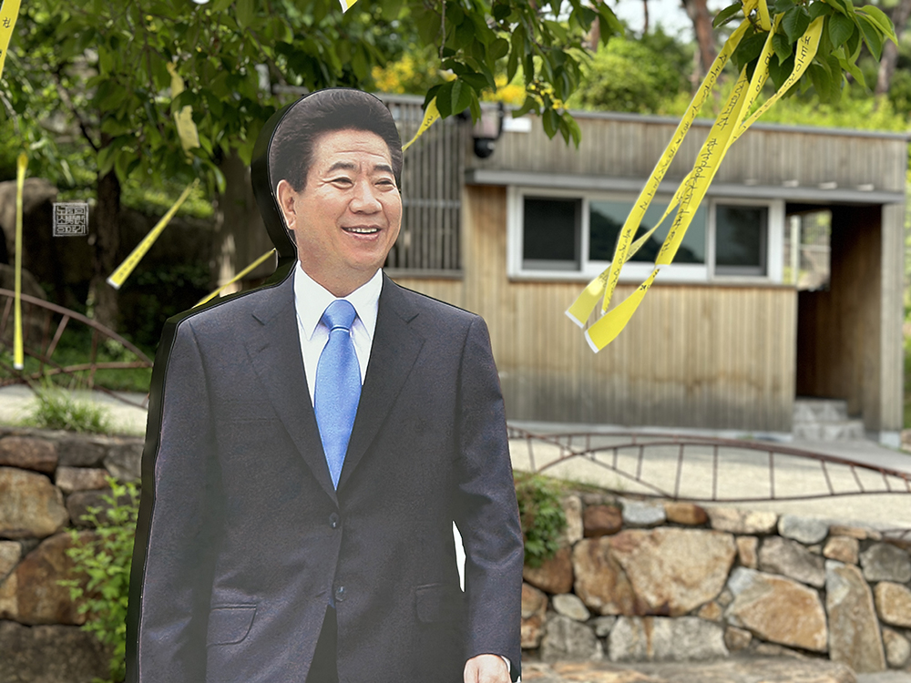 그리고 한쪽에는 고 노무현 대통령을 향한 마음을 담은 사람들이 직접 작성한 노란색 띠가 나무에 곱게 장식되어 있었다. 고 노무현 대통령이 생전에 그렇게 실천하고 싶어 했지만, 홀로 고립될 정도로 주변의 비아냥을 사면서 정치에서 끝내 이룰 수 없었던 동서 화합과 사람 사는 세상에 대한 갈망은 지금도 요원한 바람일 뿐이었다.