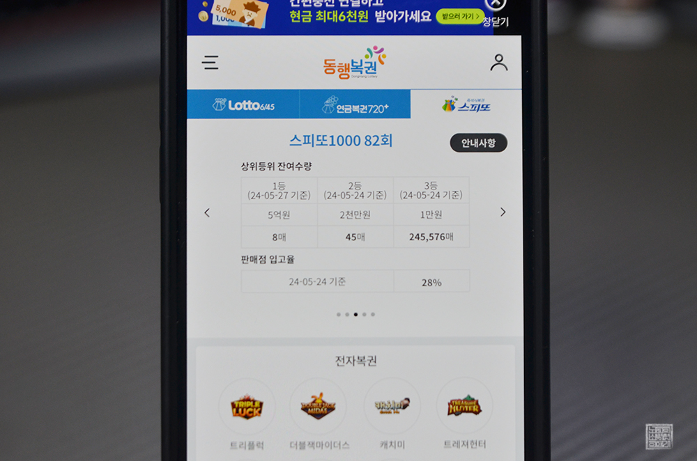 다행히 출시된지 얼마 되지 않은 스피또1000 82회이기 때문에 5억 원의 당첨금을 받을 수 있는 1등은 아직 8장이 남아 있었고, 2천 만 원을 받을 수 있는 2등도 45장이나 남아 있었다. 그동안 나는 스피또1000을 구매하면서 3등 1만 원은 종종 당첨이 되었지만, 2등 이상은 당첨이 된 적이 없다 보니 애타게 스피또1000을 구매하고 있다.