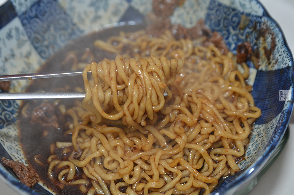짜파게티 더 블랙의 면은 건면이다 보니 일반 짜파게티의 면보다 조금 통통한 느낌이었다. 처음에는 봉지에 표기되어 있는 시간 그대로 끓이다가 면이 지나치게 통통한 느낌이 들어서 '혹시 시간을 잘못 봤나?'라며 다시 체크할 정도로 면의 느낌이 달랐다. 신라면 더 레드는 이렇게까지 면이 통통하지 않았는데… 짜파게티라 조금 다른 것 같았다.