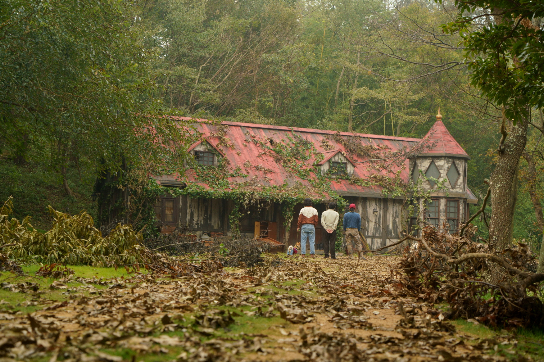 영화 <핸섬가이즈>는 이성민과 이희준 두 사람이 시골 전원주택 생활을 꿈꾸면서 시골의 외딴 주택을 찾은 모습으로 막을 올린다. 그 주택은 사진으로 보았던 것과 달리 완전히 폐가 수준으로 방치되어 있었는데, 겉모습만 본다면 귀신이 나와도 이상하지 않을 주택이었다. 그리고 실제로 그 귀신에 가까운 존재가 영화에서 등장하게 된다.