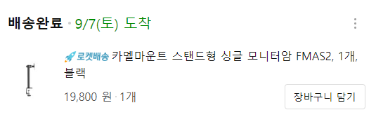 매번 컴퓨터를 사용하면서 모니터 화면을 보다 위화감이 들면 모니터가 기울어져 있었다. 그때마다 모니터를 다시 바로 잡는 게 불편했는데… 이번에 쿠팡에서 진행한 할인 행사 동안 카멜마운트에서 판매하는 스탠드형 싱글 FMAS2 모니터암을 조금 더 저렴하게 구매할 수 있는 기회가 있었다. 그래서 망설이지 않고 곧바로 주문했다.