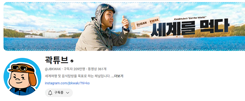 덕분에 곽튜브는 전 세계 구독자 1위 미스터 비스트 채널에 출연하기도 했고, 여러 예능 프로그램에 출연할 뿐만 아니라 다양한 연예인과 함께 여행을 다니는 유튜버가 되었다. 개인적으로 아이돌 츠키와 함께 여행을 하는 영상과 배우 안보현과 함께 여행을 하는 영상을 재미있게 보았다. 있는 그대로의 여행이 녹아 있다고 할까?