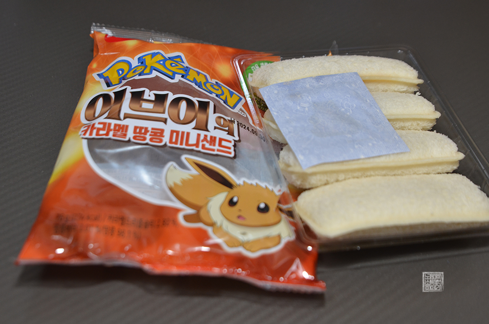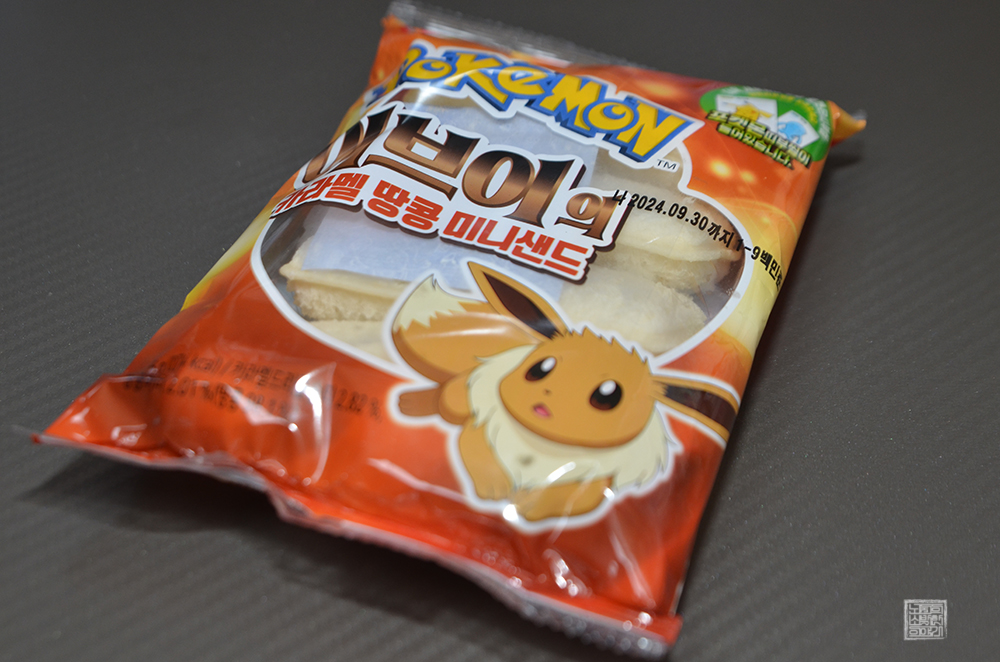어젯밤 오늘 아침으로 먹을 삼각김밥을 구매하기 위해서 가까운 GS25 편의점을 찾았다. 하지만 마땅히 입맛에 맞는 삼각김밥이 없어서 소득 없이 돌아오려고 했는데, 빵 가판대를 보니 일전에 먹어보지 못했던 포켓몬빵이 있는 것을 발견했다. 바로, 이브이의 카라멜 땅콩 미니샌드로 아무래도 새로운 포켓몬빵인 것 같았다.
