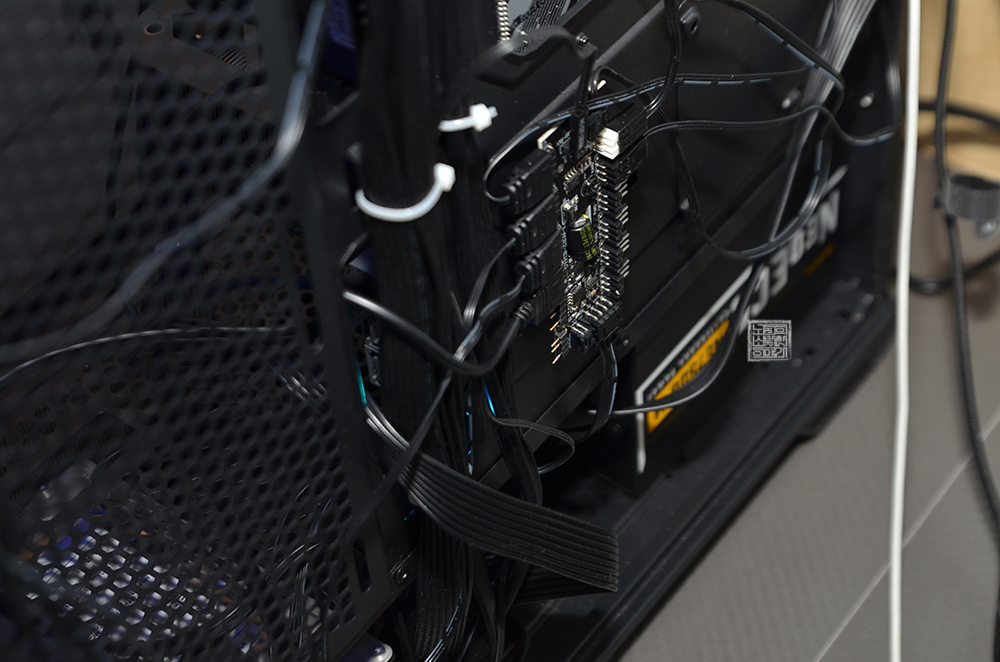 현재 내가 사용하는 컴퓨터 케이스는 컴퓨터에 장착된 팬과 aRGB 조명을 연결할 수 있는 허브가 위 사진에서 볼 수 있는 위치에 놓여 있다. 선 정리를 잘하는 사람들은 여기에 케이블을 연결할 때도 굉장히 깔끔하게 정리하는 모습을 볼 수 있지만, 아직 컴퓨터 조립과 선 정리 하수인 나는 위 사진에서 볼 수 있는 형태가 최선이었다.
