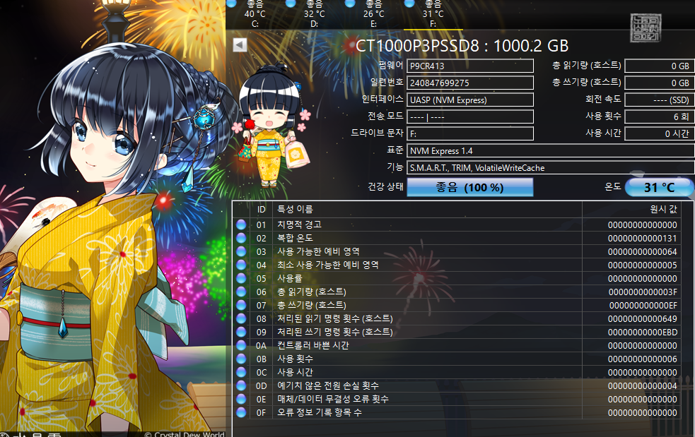 혹자는 중국에서 판매하는 제품이니 믿을 수 없을 것 같다고 말하기도 하지만, 리뷰도 모든 평이 좋았을 뿐만 아니라 실제로 제품을 받아서 확인을 해본 결과 첨부한 사진에서 볼 수 있는 것처럼 모든 상태가 양호했다. 마이크론 Crucial P3 Plus 1TB 제품은 순차적 읽기 5000MB/s 순차 쓰기 3600MB/s를 지원해 절대 느리지 않았다.