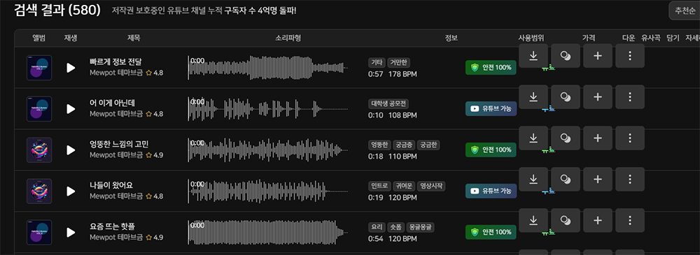 뮤팟에서 유튜브 전문가의 배경음악 효과음 자막 템플릿 다운로드받자