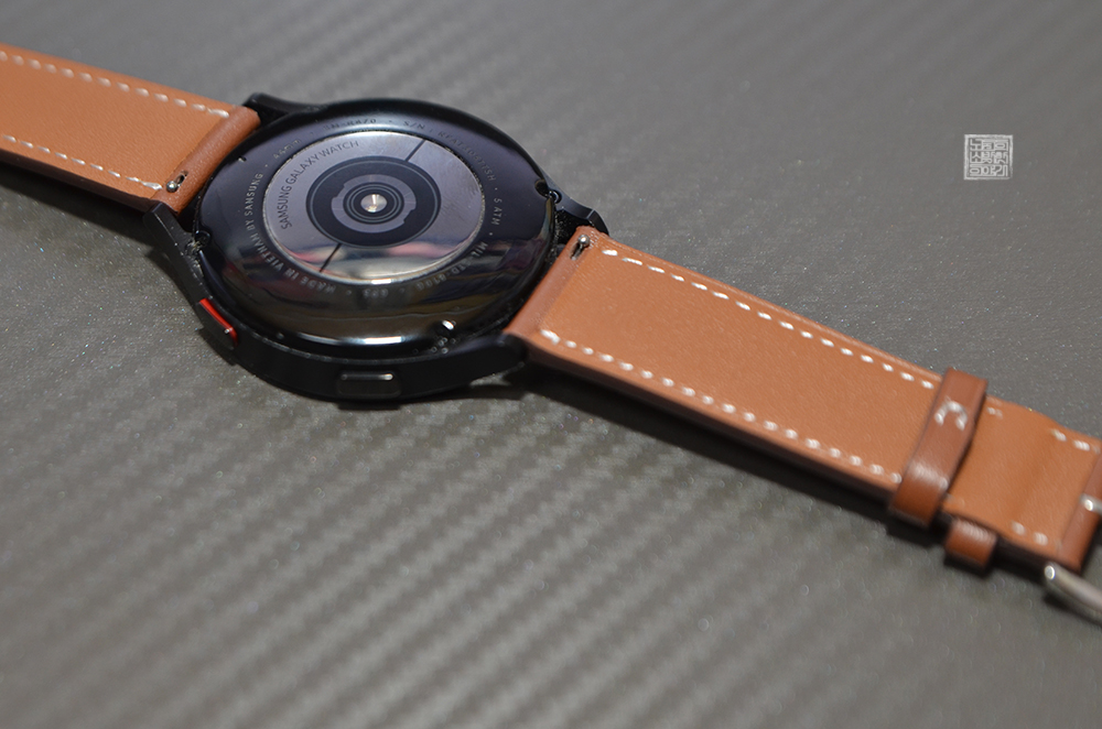 신지모루 가죽 레더 밴드 스트랩을 갤럭시워치4에 장착한 모습은 위와 같다. 신지모루 갤럭시워치 싱글투어 가죽 레더 밴드 스트랩은 브라운 색상의 가죽에 잘 어울리는 하얀색 실로 박음질이 되어 있다 보니 한층 더 깔끔하고 심플해 보여서 디자인적인 요소도 마음에 들었다. 당연히 마감 상태도 훌륭해서 나무랄 데가 없었다고 생각한다.