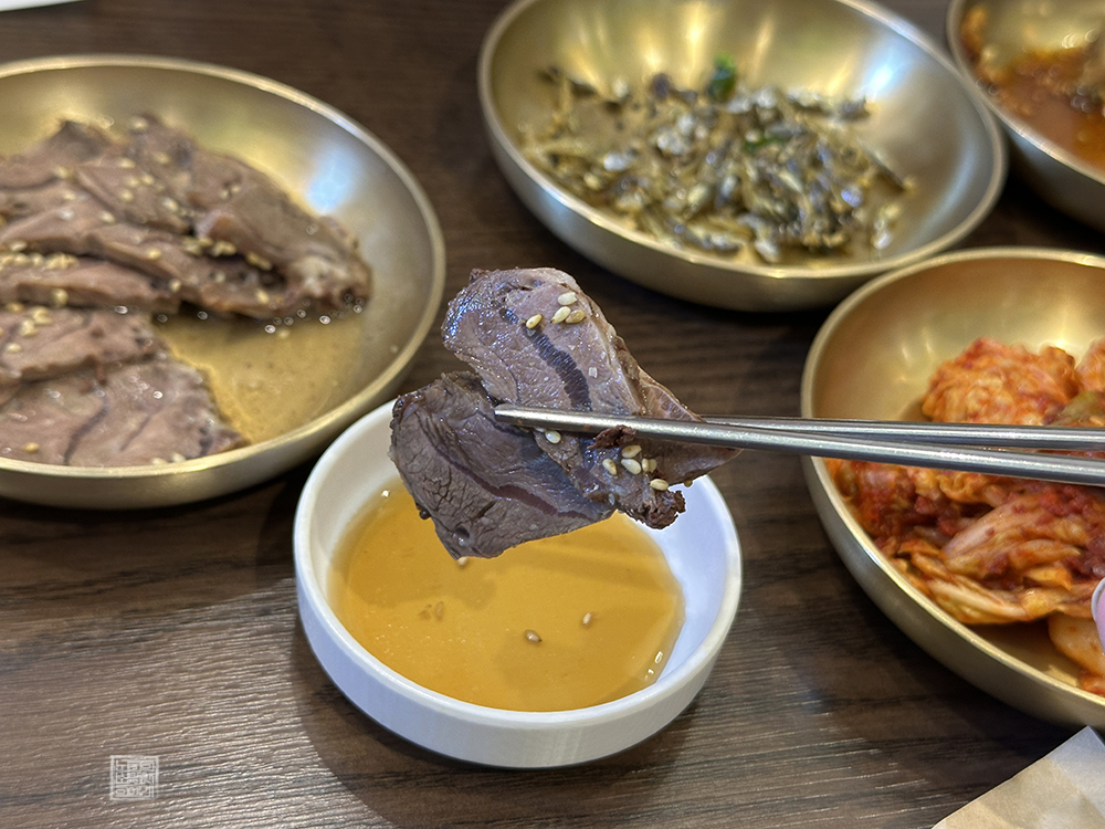 위에서 첨부한 사진에서 볼 수 있는 소고기가 이번에 맛보기 수육으로 다른 밑반찬과 함께 받았던 수육이다. 수육 자체는 쫄깃한 식감을 즐기면서 맛있게 먹을 수 있었지만, 수육 백반과 함께 수육 메뉴를 따로 추가한다면 적정한 가격을 책정하는 게 조금 어려워 보였다. 돼지국밥이 아니라 소고기국밥이다 보니 지금도 조금 비싼데….