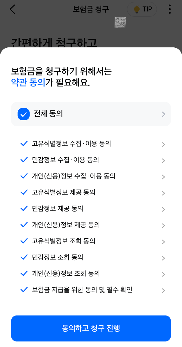 가장 먼저 우리가 선택해야 하는 항목은 보험금 청구 사유를 선택하는 일이다. 재해(다쳐서)로 보험금을 청구할 경우에는 당연히 재해를 선택해야 하고, 나처럼 A형 독감 같은 질병에 걸렸을 경우 질병(아파서)을 선택한 이후 여러 정보 수집에 동의하고 청구 진행을 하면 된다. 보험금 청구 과정에서 개인정보 제공 동의는 필수다.