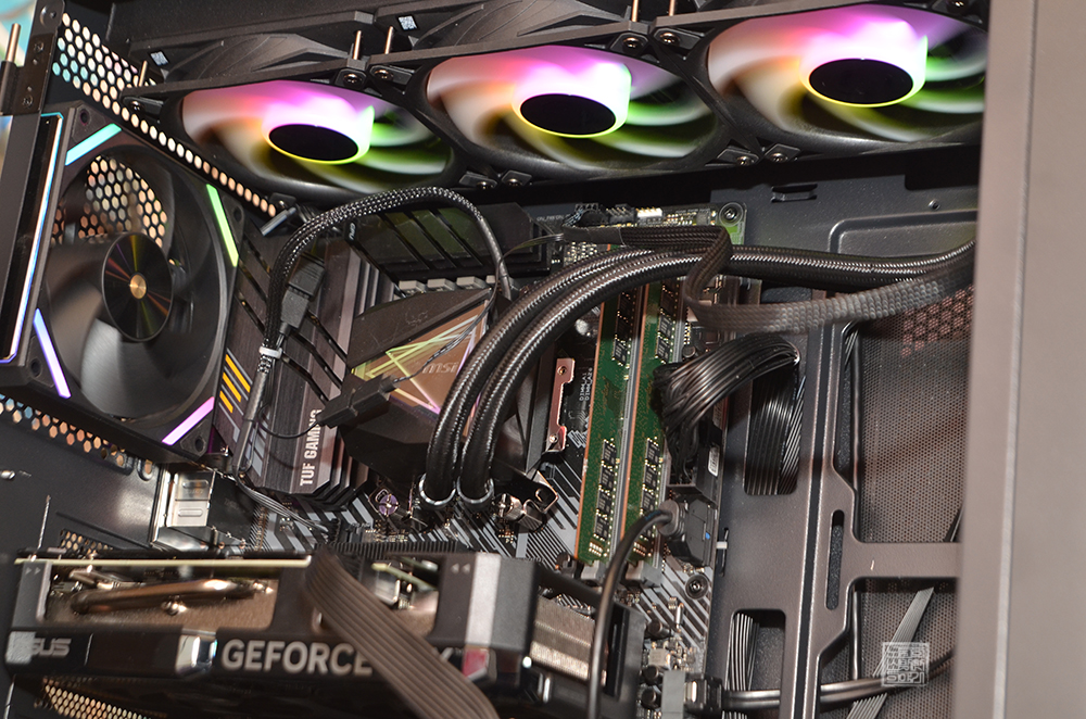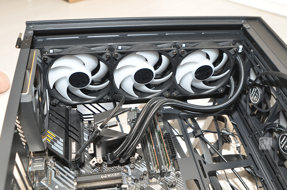 이외에도 전면에 420mm 규격의 수랭 쿨러를 장착할 수가 있고, 측면 공간에도 240mm 수랭 쿨러를 장착할 수 있는 공간이 있어서 다양한 쿨링팬을 활용해 컴퓨터 케이스에 더할 수가 있었다. 기본적으로 이 정도의 사이즈는 빅타워 수준에 해당하는 느낌을 받기 마련인데, 마이크로닉스 WIZMAX 아트리안 케이스는 그렇지 않았다.