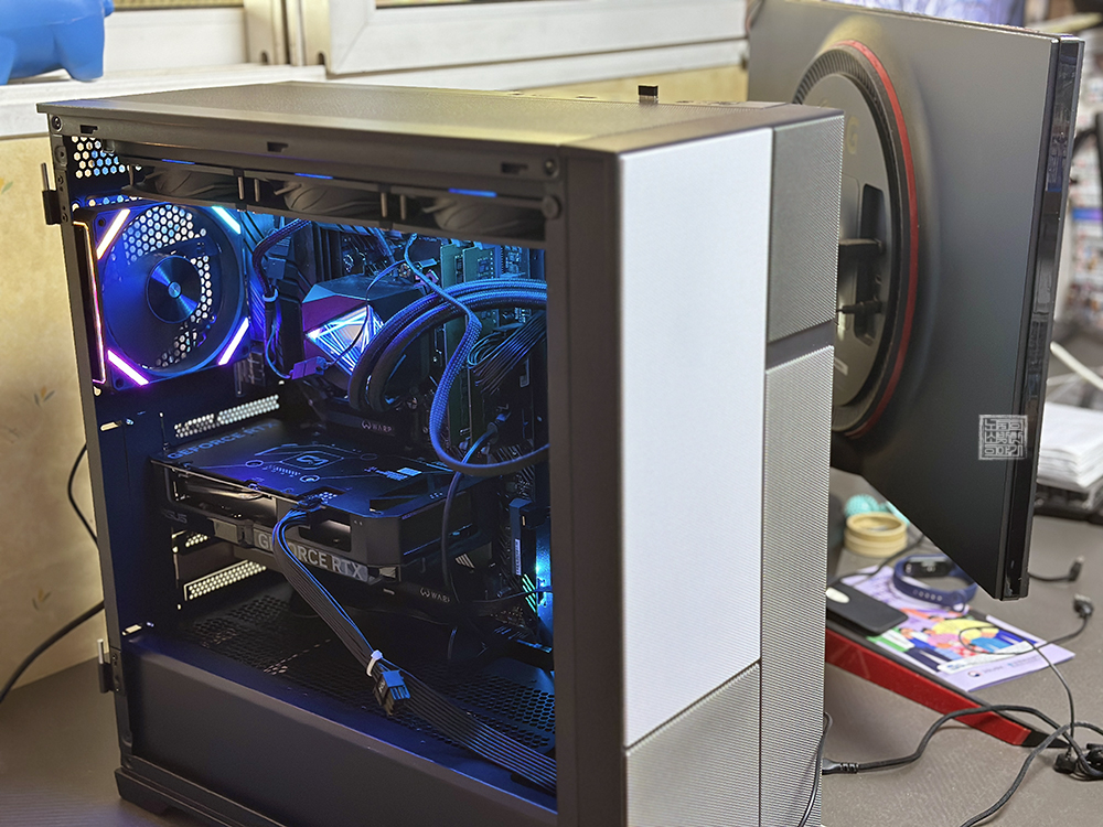 그 부분을 제외한다면 마이크로닉스 WIZMAX 아트리안 케이스는 미들타워 케이스라고 해도 범용성이 높아서 만족스러웠다. 특히, 마지막 사진에서 볼 수 있듯이 컴퓨터 책상 위에 배치할 경우 마치 하나의 미술 작품 같은 느낌이 들어서 좋았다. 다행히 찐 몬드리안처럼 빨간색이 들어가 있지 않고, 흰색을 포인트로 사용해서 좋았다.