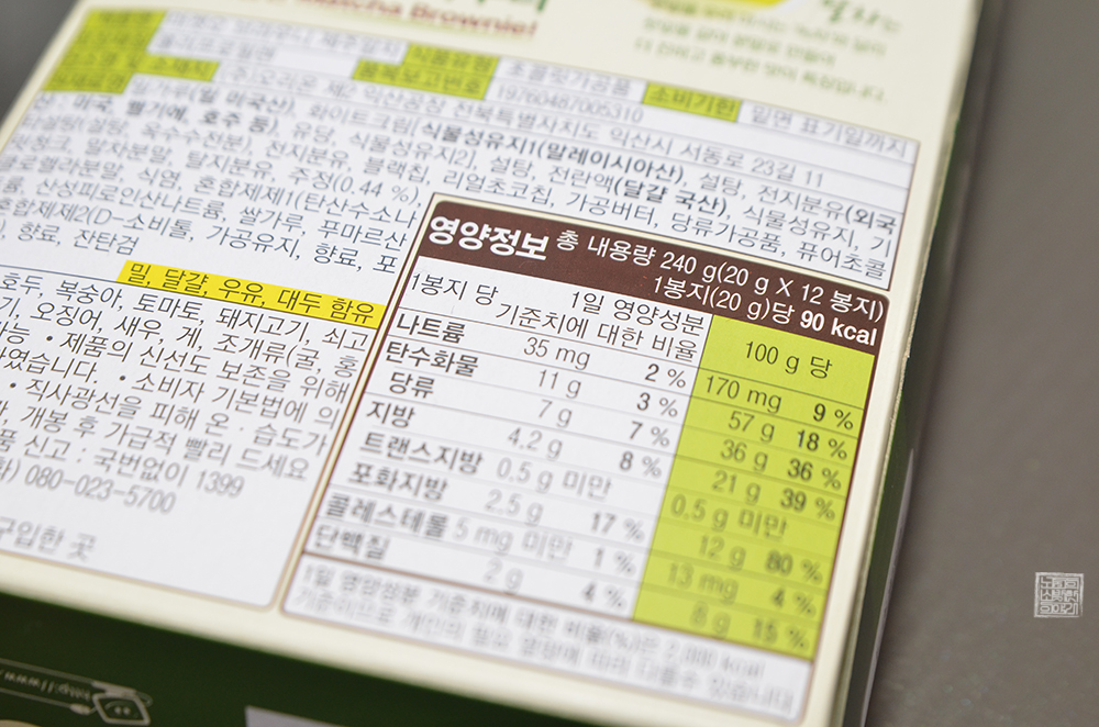 하지만 이번에 수치 상 크게 차이는 없어도 양심상 걱정할 필요가 없는 디저트 하나를 만나게 되었다. 바로, 마켓오 브라우니 제주말차 제품이다.