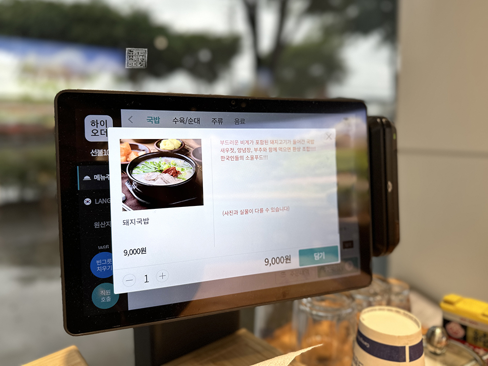 국밥을 주문할 수 있는 하이오더 태블릿에는 밀양황금돼지국밥에서 사용하는 재료들의 원산지를 확인해 볼 수도 있었고, 매장에서 사용할 수 있는 와이파이를 QR 코드로 연결할 수도 있었다. 돼지국밥을 주문한 이후 잠시 기다리는 동안 하이오더 태블릿의 메뉴를 하나씩 만져보니 이런 편리함도 있다는 것이 굉장히 놀라웠다.