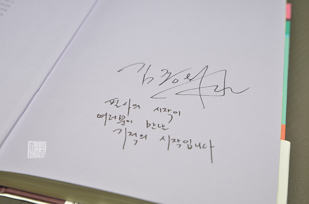 책의 프롤로그에 들어가기 전에 김종원 작가가 자필로 글이 인쇄된 페이지에는 '필사의 시작이 여러분이 만난 기적의 시작입니다.'라고 적혀 있다. 이게 기적이라고 말할 수 있는지는 40일 동안 필사를 하면서 잘 모르겠지만, 여전히 기적은 오늘 구매한 로또 복권 혹은 스피또 복권이 당첨되는 일이라고 생각하지만… 좋은 글은 있었다.