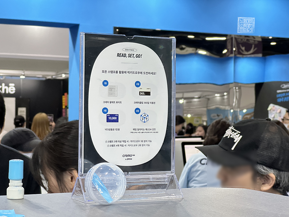 그리고 평소 책을 좋아하는 사람들이라면 각 출판사 부스에서 진행하는 소소한 이벤트도 놓칠 수 없다. 나는 얼마 전에 서비스가 복귀된 예스24 부스를 찾아 러키드로우 이벤트에 참여하기 위해 여러 미션을 소화했는데, 1등 상품이 무려 크레마 팔레트 화이트 제품이었다 보니 대단히 욕심이 났다. 하지만 결과는… 언제나 그렇듯이 꽝이었다.