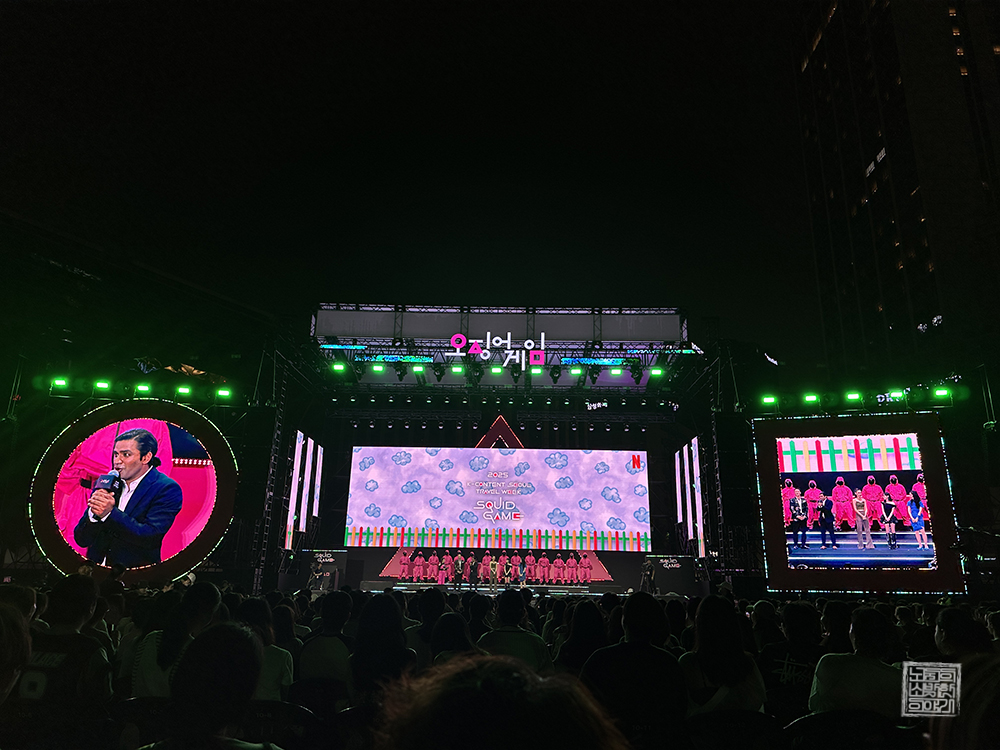 그리고 <오징어게임 피날레 팬 이벤트>는 퍼레이드의 시작과 함께 서서히 본막을 향해 다가가고 있었는데, 시간이 계속 지연이 된 탓에 나는 조금 불안함을 감출 수가 없었다. 왜냐하면, 당일 김해로 돌아가는 버스 막차(10시 30분 출발)를 예매해 놓은 터라 적어도 약 9시 30분에는 이 자리를 벗어나야 했었기 때문이다.