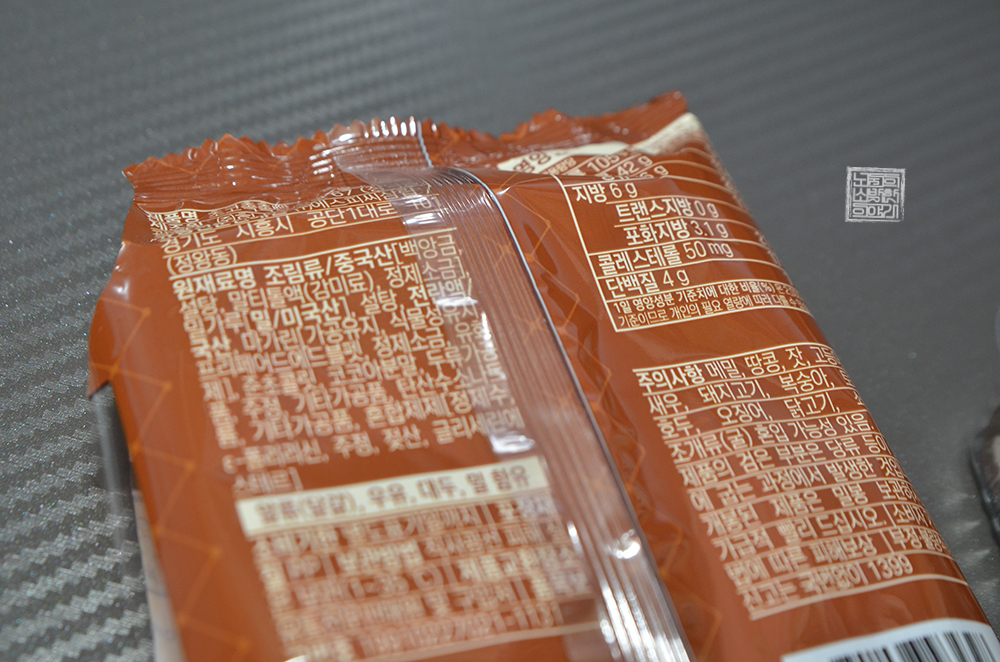 아리스의 귀여운 일러스트가 그려진 아리스의 레트로 초코 촉촉빵은 총 내용량 70g에 칼로리는 238칼로리 정도라 우유 한 잔과 함께 가벼운 아침 식사로 좋았다. 처음에 그냥 초코 촉촉빵이 아니라 '레트로'가 붙은 이유를 알지 못했었는데, 알고 보니 이 빵에 들어가 있는 건 초코 크림이 아니라 앙금이 들어가 있었다.