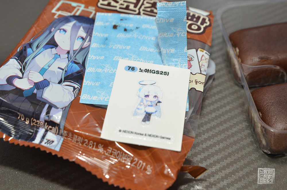 그리고 콜라보가 진행 중인 빵은 당연히 포장지만 일러스트가 그려져 있는 게 아니라 빵을 먹으면 띠부띠부씰도 함께 받을 수가 있었다. 이번에 내가 구매한 아리스의 레트로 초코 촉촉빵을 먹고 손에 넣을 수 있었던 띠부띠부씰은 76번 노아(GS25)로, GS25 편의점 콜라보를 맞아 새롭게 그려진 오리지널 일러스트였다.