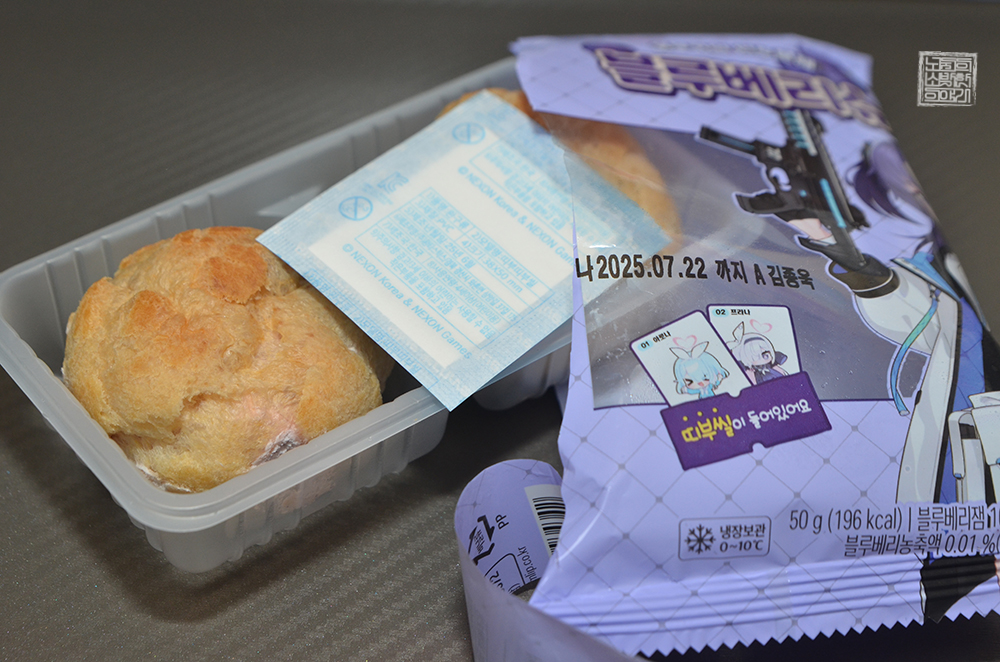 오늘 소개하고 싶은 빵은 마찬가지로 GS25 편의점에서 판매하는 블루 아카이브 콜라보 제품인 유우카의 인수분해 블루베리슈다. 이름에서 알 수 있듯이 이 빵은 블루베리 크림이 들어간 슈로, 그동안 우리가 삼립을 통해 먹을 수 있었던 딸기 크림슈나 초코 크림슈와 달리 블루베리가 들어가 있어 제법 색다르게 나왔다고 볼 수 있었다.