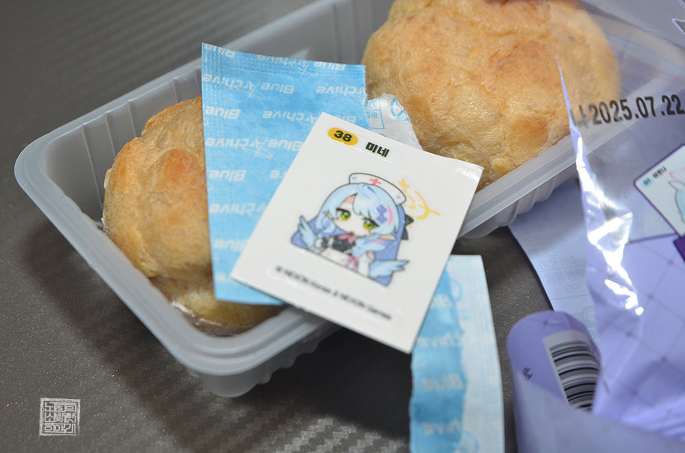 그리고 이 빵에 들어가 있던 블루 아카이브 띠부띠부씰은 38번 미네로, 간호사복을 입고 있는 미네의 모습이 SD 캐릭터 일러스트로 귀엽게 잘 그려져 있었다. 앞서 소개했던 빵들과 모두 함께 같은 GS25 편의점에서 구매했어도 중복 띠부씰이 없다는 건 놀라운 일이었다. 다음에 구매하게 될 빵에서는 어떤 스티커가 나오게 될까?
