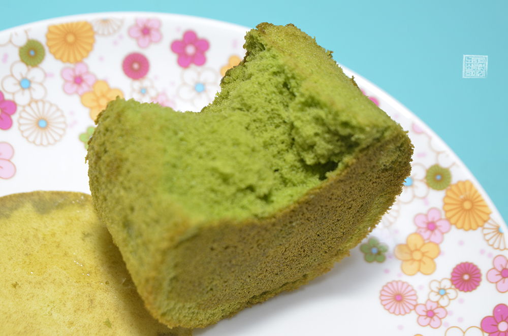 실제로 말차 카스테라를 포장지에서 꺼내 본다면 위와 같다. 겉으로 보면 말차의 녹색이 주를 이루다 보니 말차 향이나 맛이 굉장히 진할 것 같지만… 생각보다 말차향이 진하지 않았다. 카스테라를 먹기 전에 가까이 다가가서 코로 냄새를 맡았을 때 아주 은흔하게 말차향이 나는 정도이다 보니 말차 덕후들에게는 아쉬울 수도 있다.